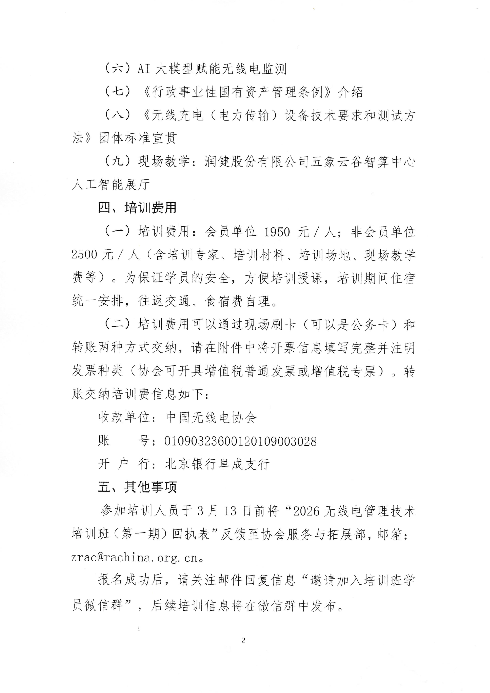 关于举办2026无线电管理技术培训班(第一期)的通知