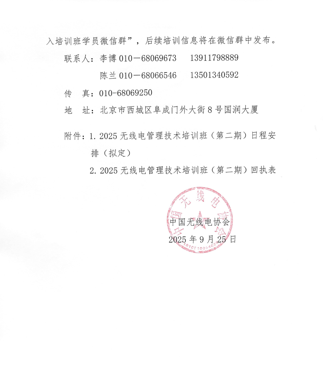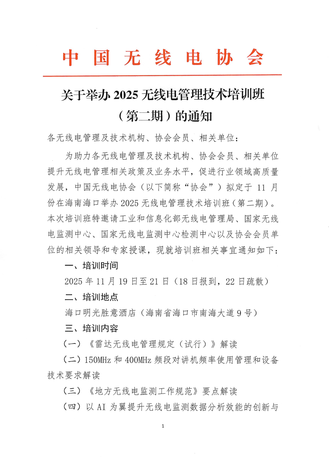 关于举办2025无线电管理技术培训班(第二期)的通知