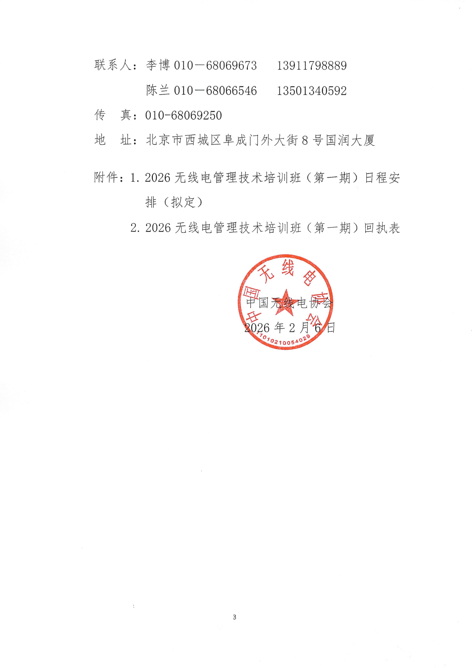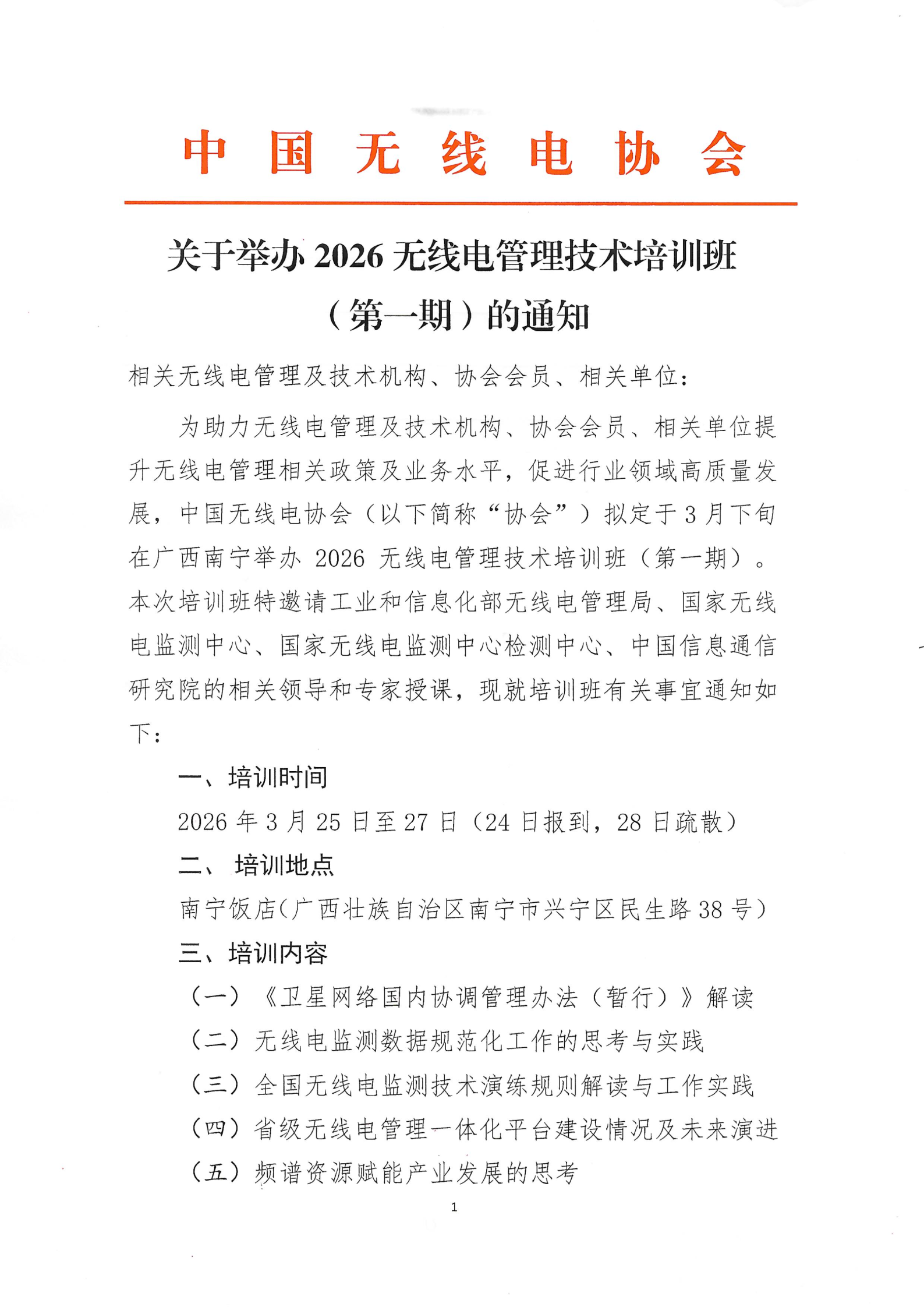 关于举办2026无线电管理技术培训班(第一期)的通知