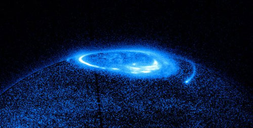 2007年哈勃太空望远镜拍摄的图片显示紫外线下木星的北极光