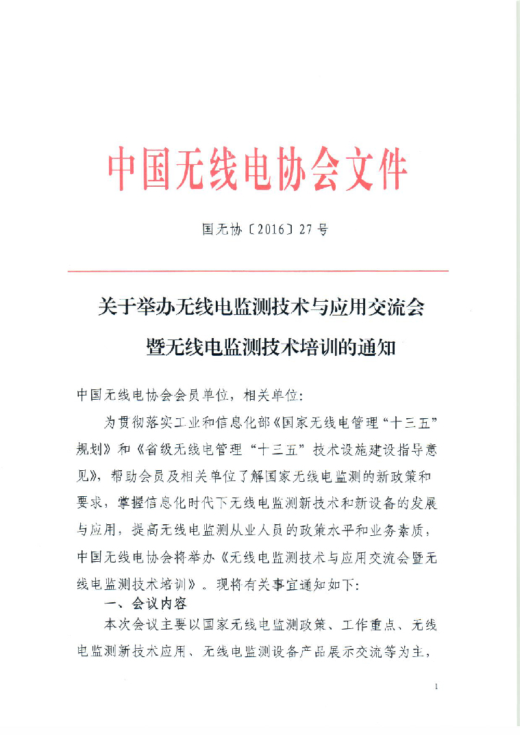 关于举办无线电监测技术与应用交流会暨无线电监测技术培训的通知